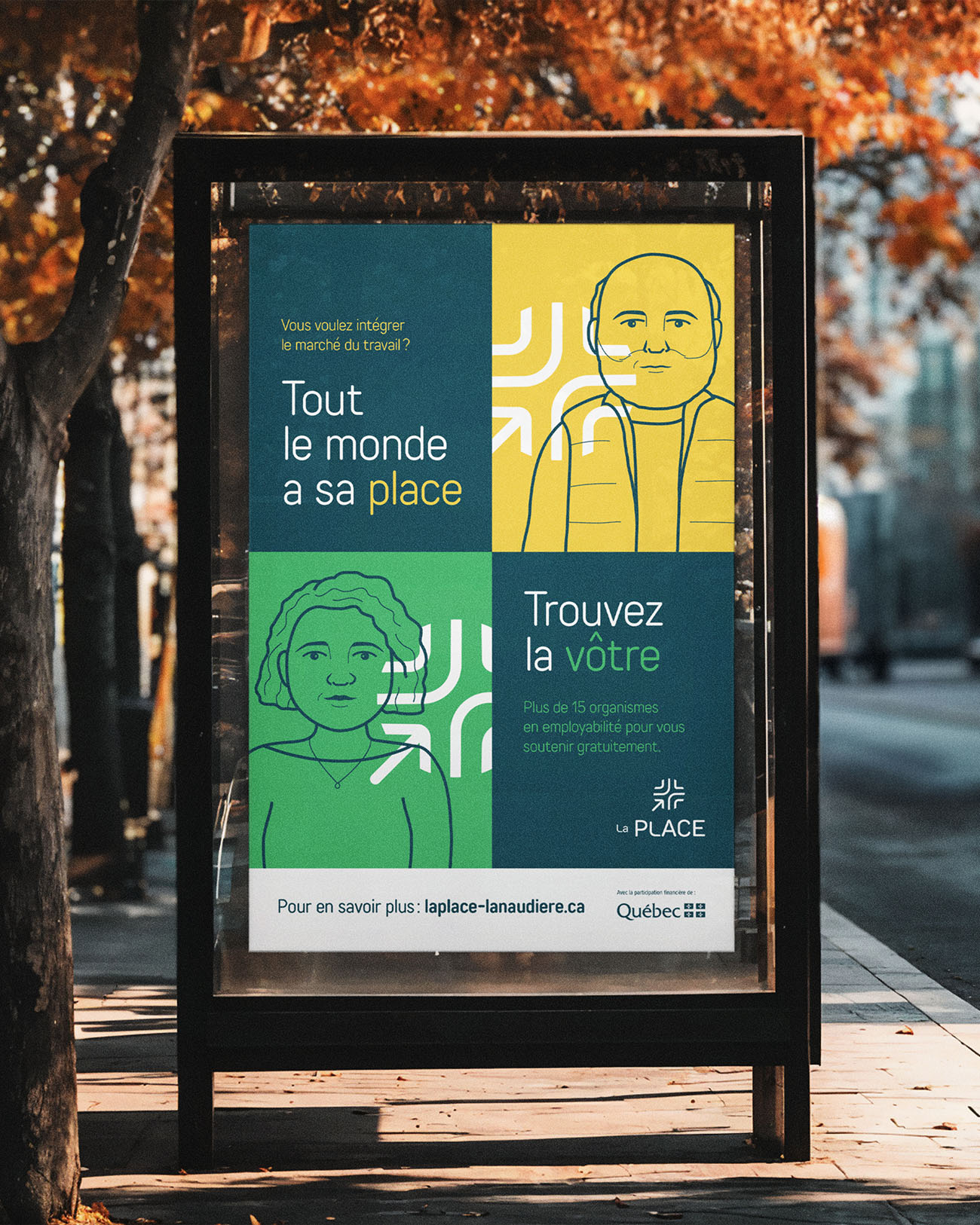 Designed in a modular fashion, the campaign adapts to different contexts and locations, focusing on the persona most relevant to the target audience. The campaign was deployed on bus shelters and buses across Lanaudière, in social media campaigns, and on posters displayed in community organizations and various service outlets.